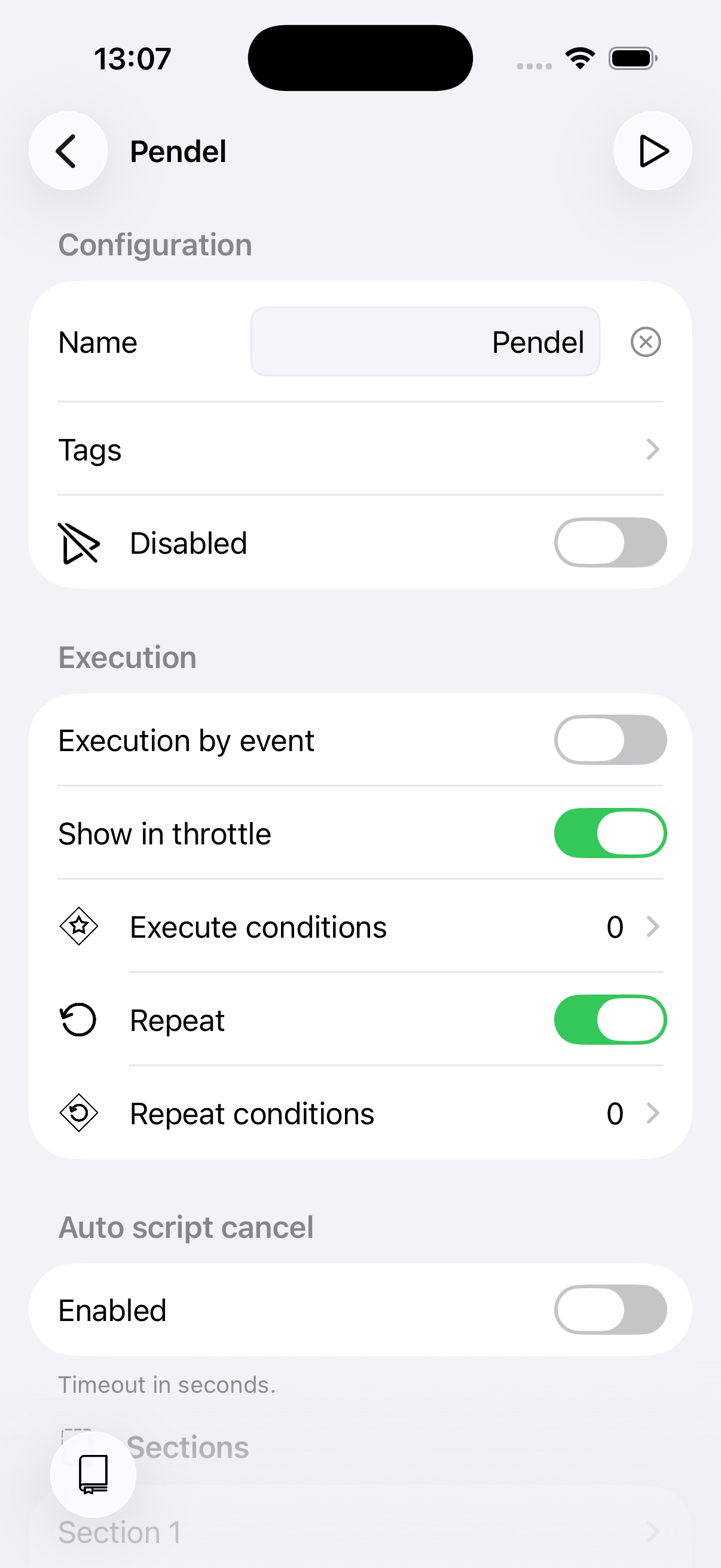 Start the shuttle from the script editor or from the automate tab in the throttle. With repeat enabled, the script loops until you stop it manually.